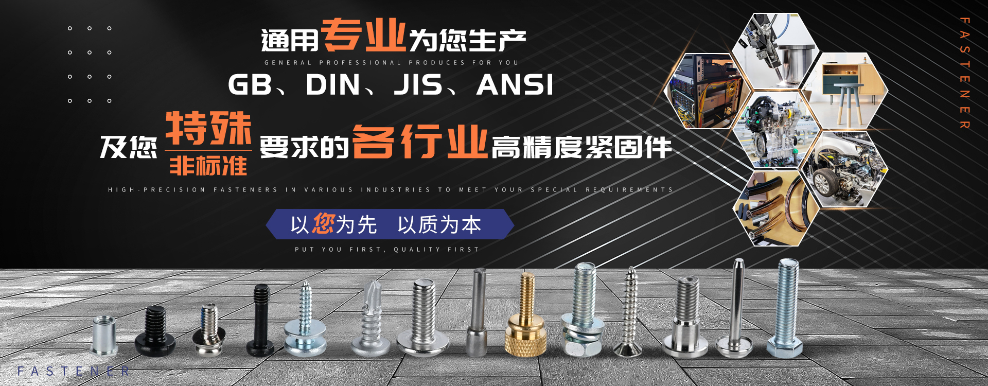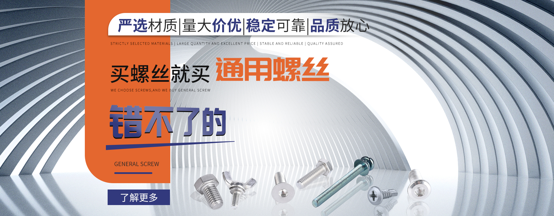 中山市通用螺絲制造有限公司成立于1987年,工廠坐落于廣東四小虎之一的中山市,北連廣州,毗鄰港澳??傉嫉孛娣e14000m 2,足有兩個足球場。1998年通過德國萊茵TUV ISO9002認證,于2002年通過TUV ISO9001:2000認證。2008年通過ISO 14000認證。我司主營自攻螺絲組合螺絲、機械螺絲、防松螺絲等標準和非標準件既可按客戶的要求提交所需的產品,也可為客戶量身定做所需產品。我司擁有專業的產品檢測隊伍和投影分析儀、金相、硬度計(韋氏和洛氏)、扭矩力測試計等完善的檢測設備,為電子、電器、五金塑料、衛浴、家具、機械、汽配等行業提供符合歐盟質量、環保要求的產品2006年,我司自主開發的ERP管理系統,使我們的生產和服務效率得到了極大的提高 經過三十多年地摸爬滾打,依靠眾多新老顧客的支持,通用螺絲逐漸成長為國內知名的緊固件供應商。了解更多 >>